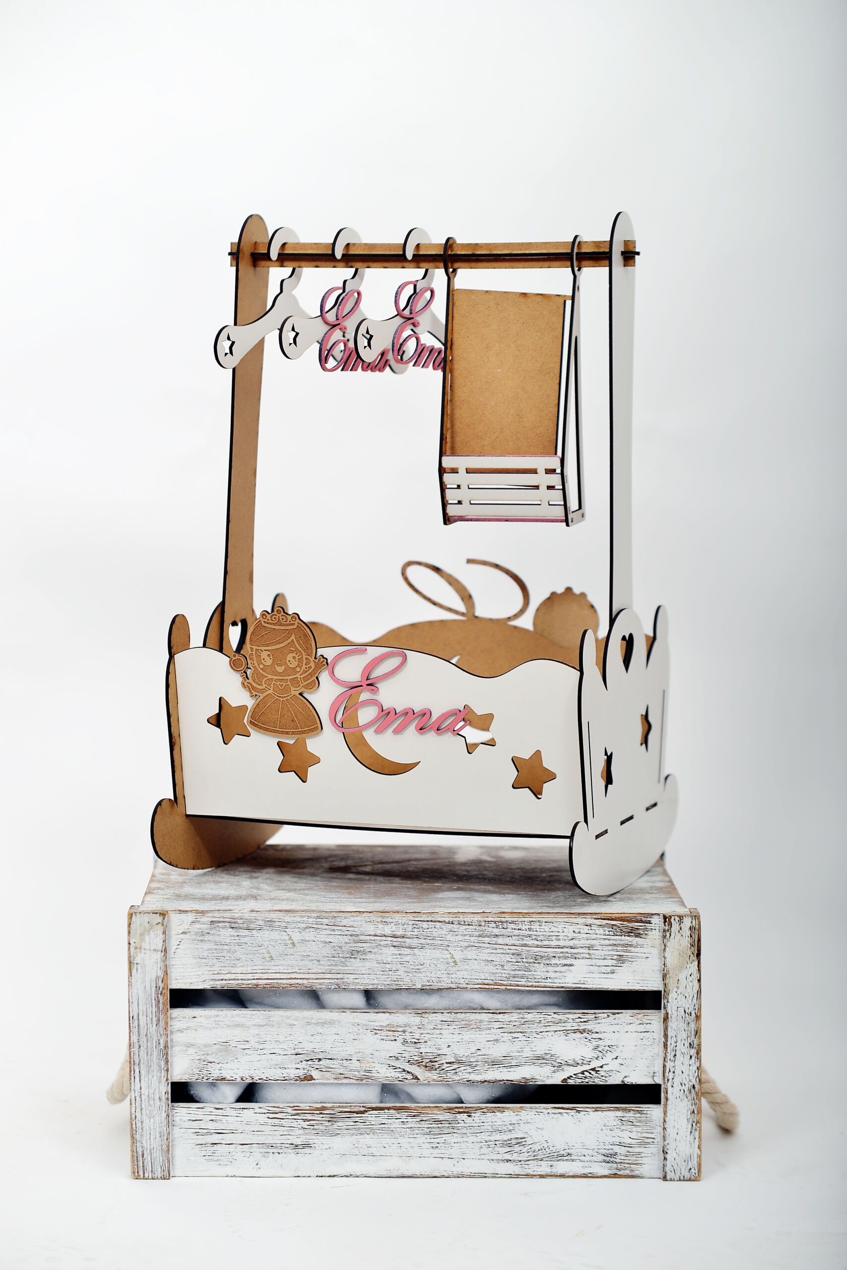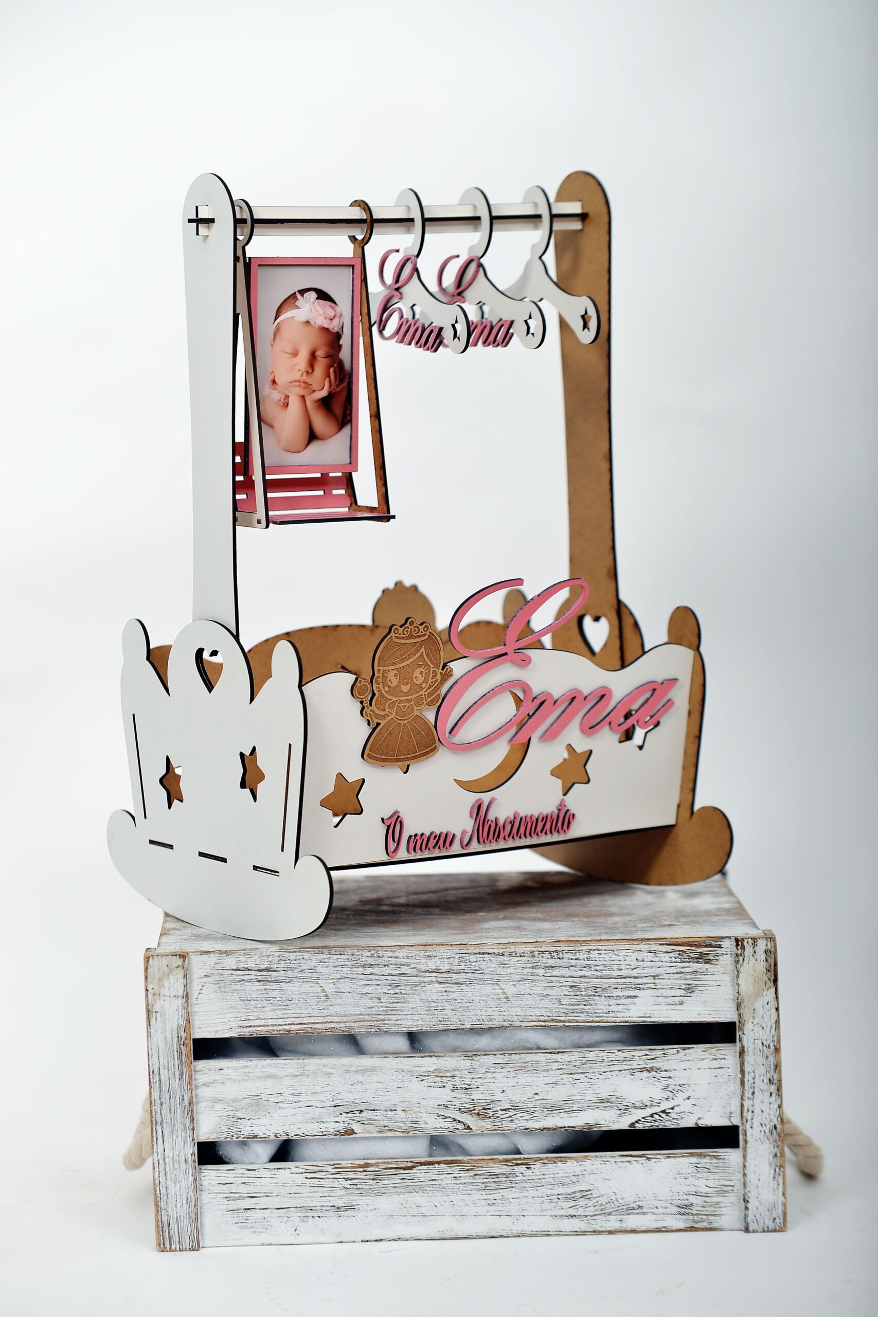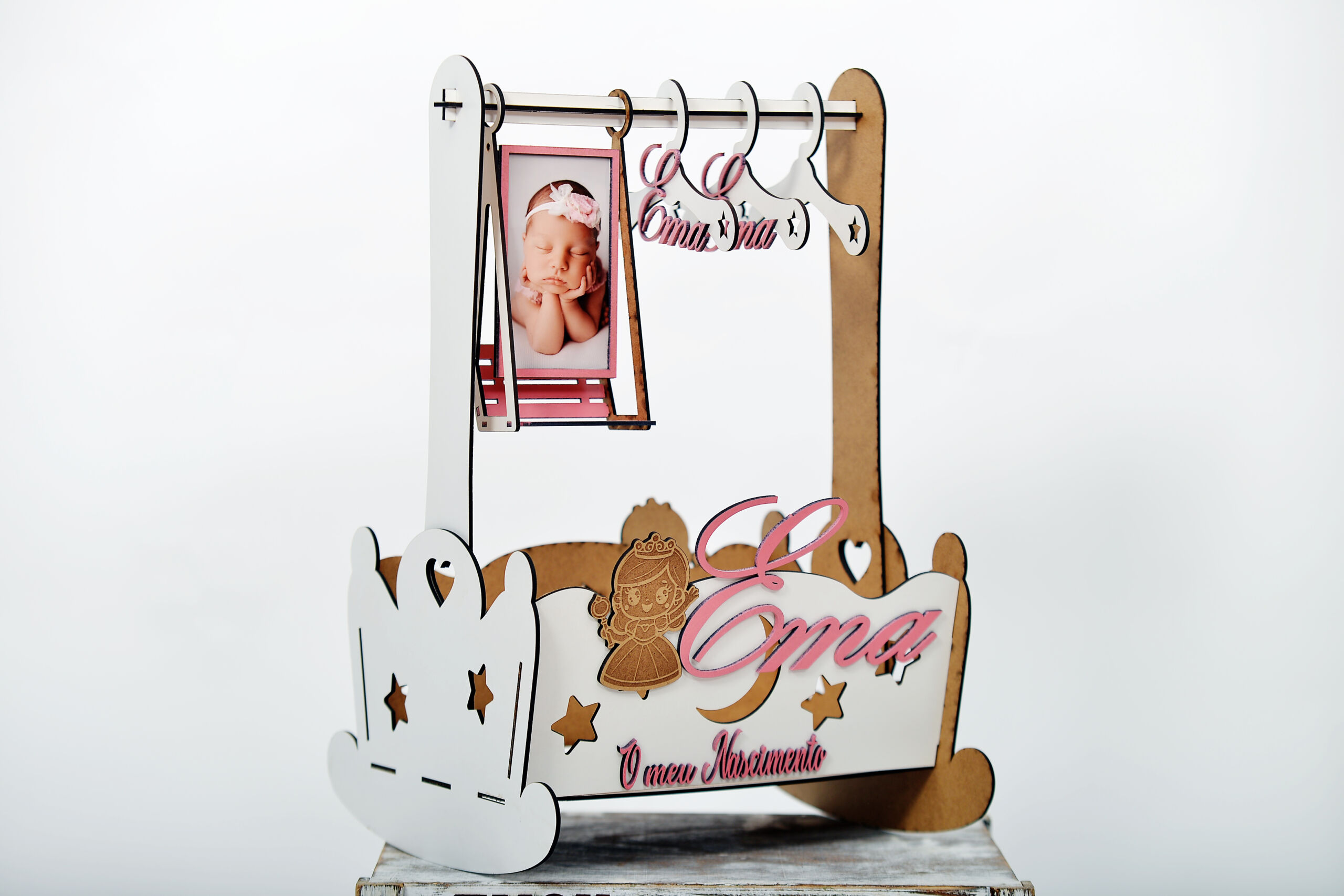 - Cabide de madeira personalizável – indique o nome e a data na nota da encomenda.